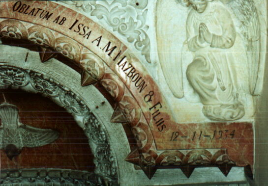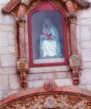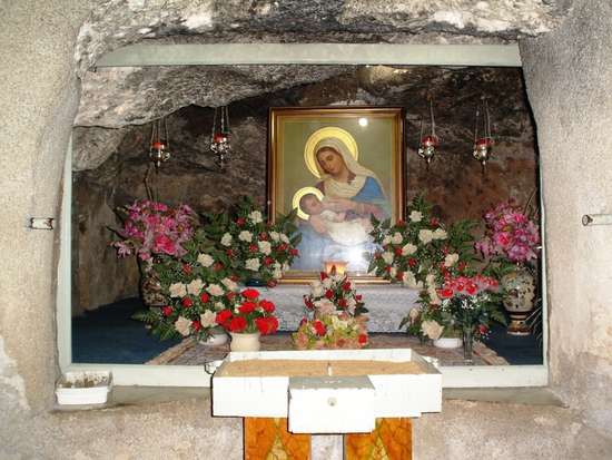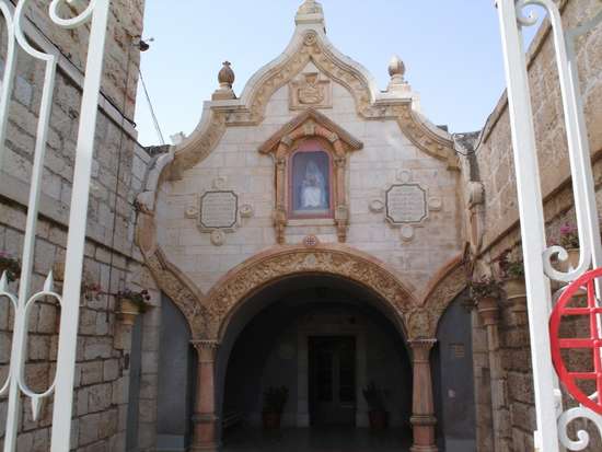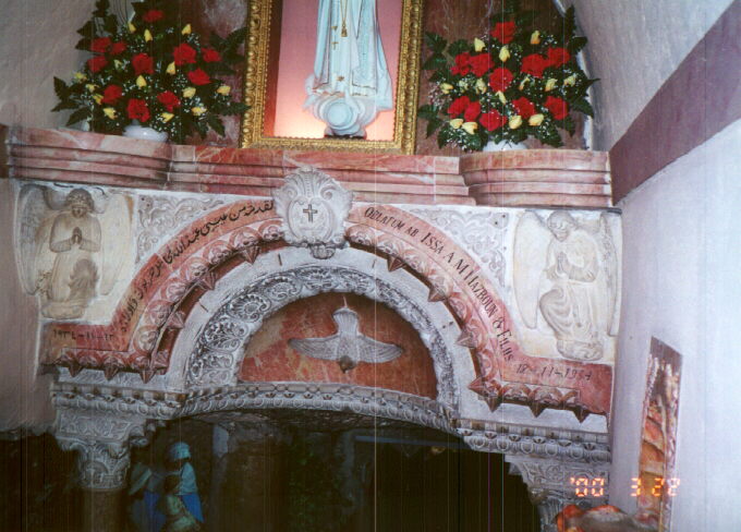 The present building around the Grotto was put up by the Franciscans in 1872, some of the old church mosaics and traces of original walls remain to this day. The church was extensively rebuilt, remodeled, and adorned with marble and hand cut sculptures, benches, icons, and engravings by Issa A. Michael Hazboun and sons in 1934-1935.